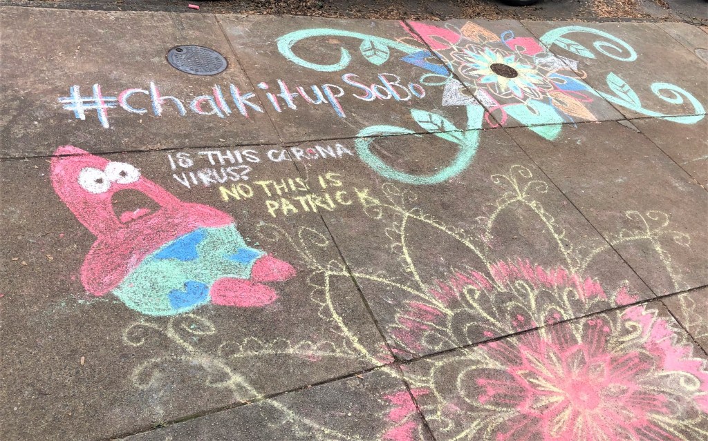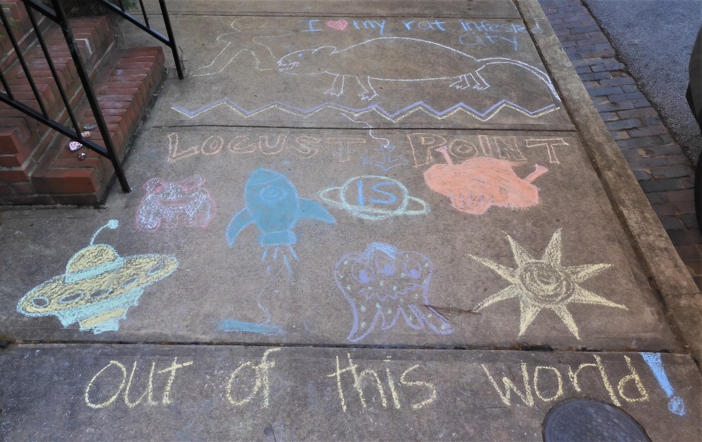 Who could have imagined such an amazing outpouring of creativity and community spirit in these strange pandemic times? It seemed the entire South Baltimore peninsula turned out for the #ChalkItUpSoBo “chalk your walk” extravaganza the weekend of Friday, May 1 through Sunday, May 3. Eighty people signed up in advance for free chalk, but many more of our friends and neighbors took to their sidewalks (and brick walls) with chalk and imagination. And the weather cooperated the entire time with warm temperatures and bright sun on Saturday and slightly overcast skies on Sunday.