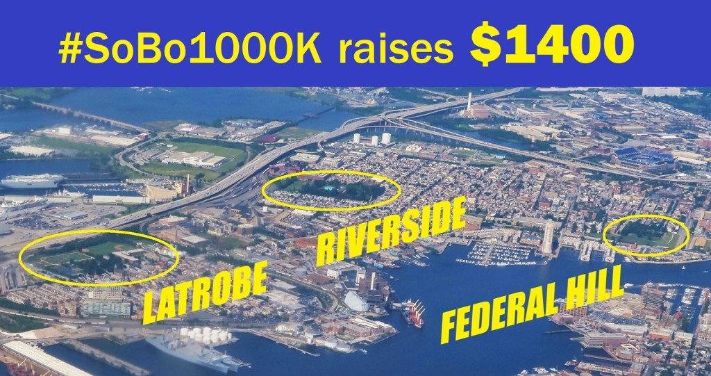 Six pandemic-related relief organizations benefited from the 364.5 miles that South Baltimore peninsula residents walked, ran, and biked as part of the #SoBo1000K Memorial Day weekend.