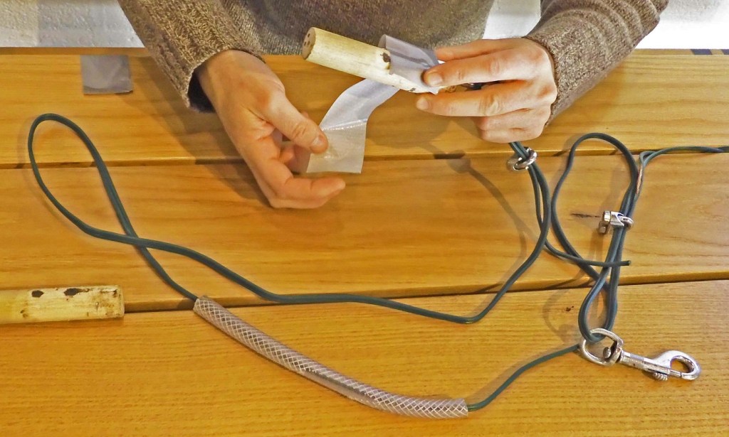 9 ft. extension cord; 9-inch length of fiberglass reinforced tubing; 2 wire clamps; two clothesline swivel hooks; two 6-inch dowels; foam padding (optional)