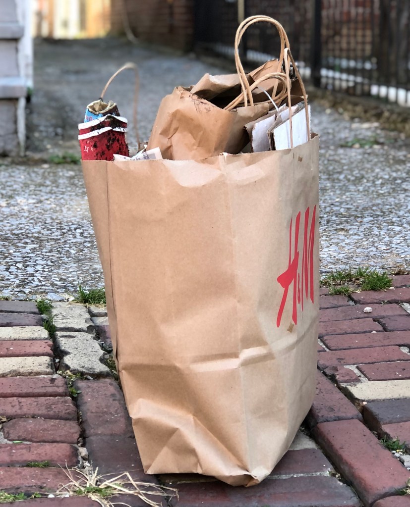 A discarded H&M paper shopping bag was packed tight with plastic bottles, cans and scraps of trash at the end of my meandering walk from the School 33 Art Center to Federal Hill and back on Monday. Over a dozen other like-minded SoBo residents fanned out across the peninsula on their own routes to help clean up the neighborhood on the National Day of Service, Jan. 18, honoring Martin Luther King, Jr.