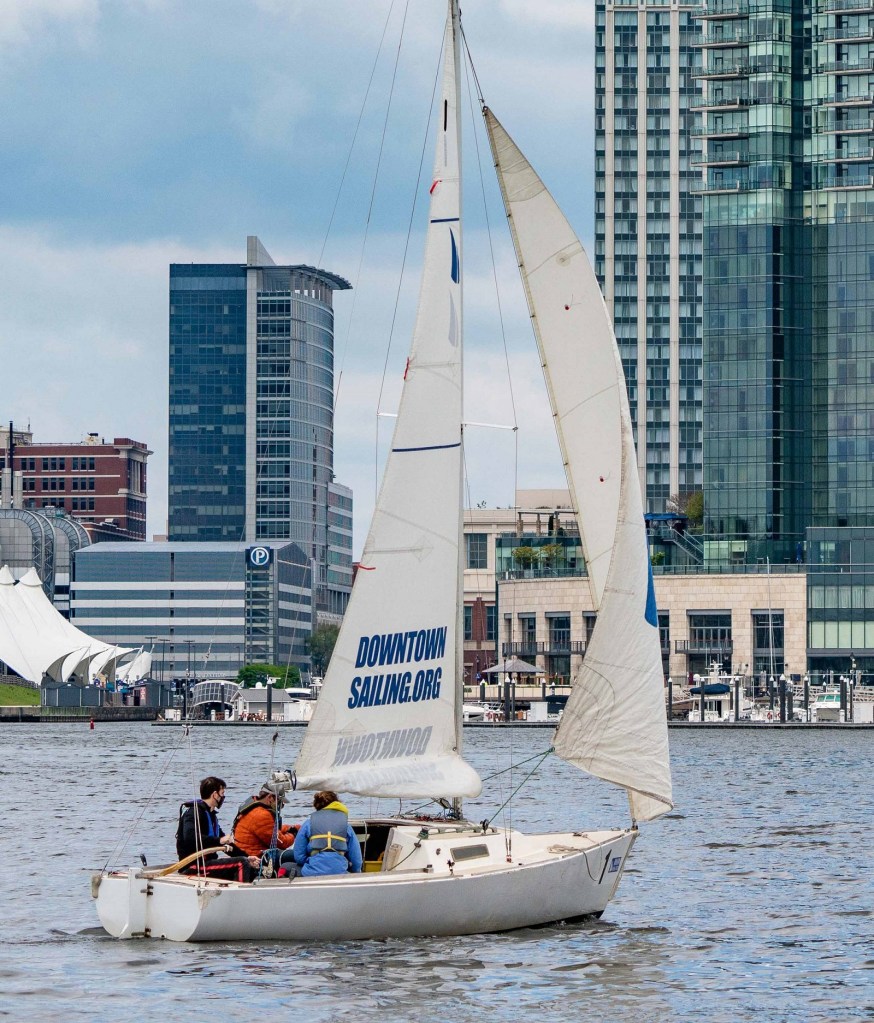 Although sailing is a year-round activity at the Downtown Sailing Center from docks at the Baltimore Museum of Industry, April brought the start of classes, evening races, and other programs that continue through fall. Kayaks are a new addition this year to the Center’s fleet of about 50 boats available to members. On April 25, over a dozen sailors set out on a “member sail” to Fort McHenry and back.
