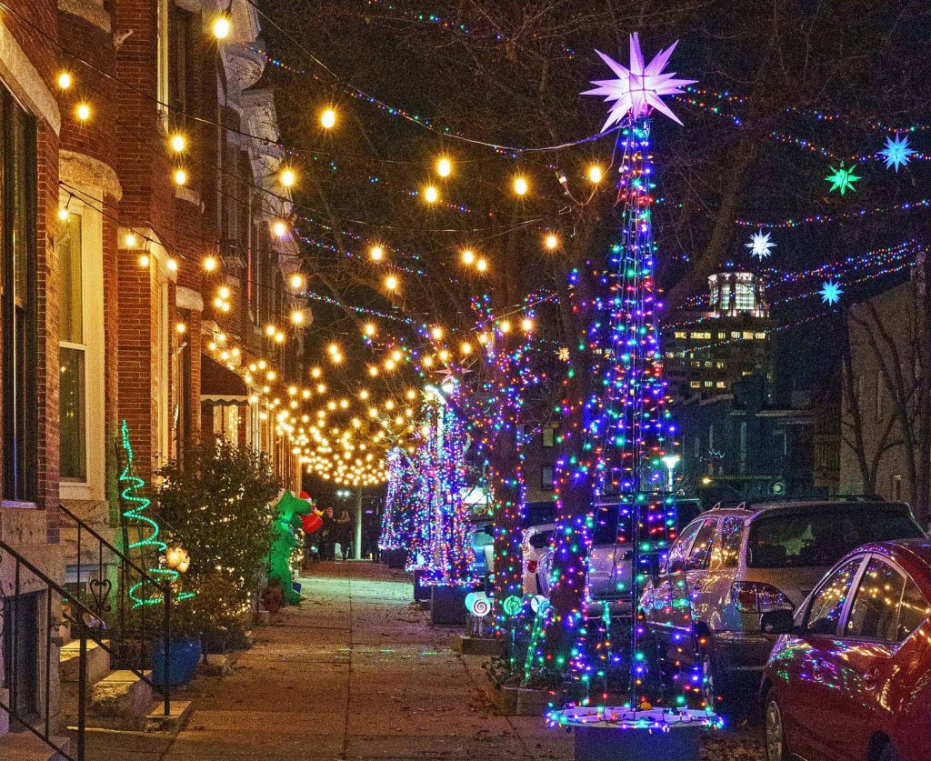 This year we identified 51 places across the South Baltimore peninsula with awesome light displays that stretch high above the street or far along a block. Our survey was conducted December 16-18.