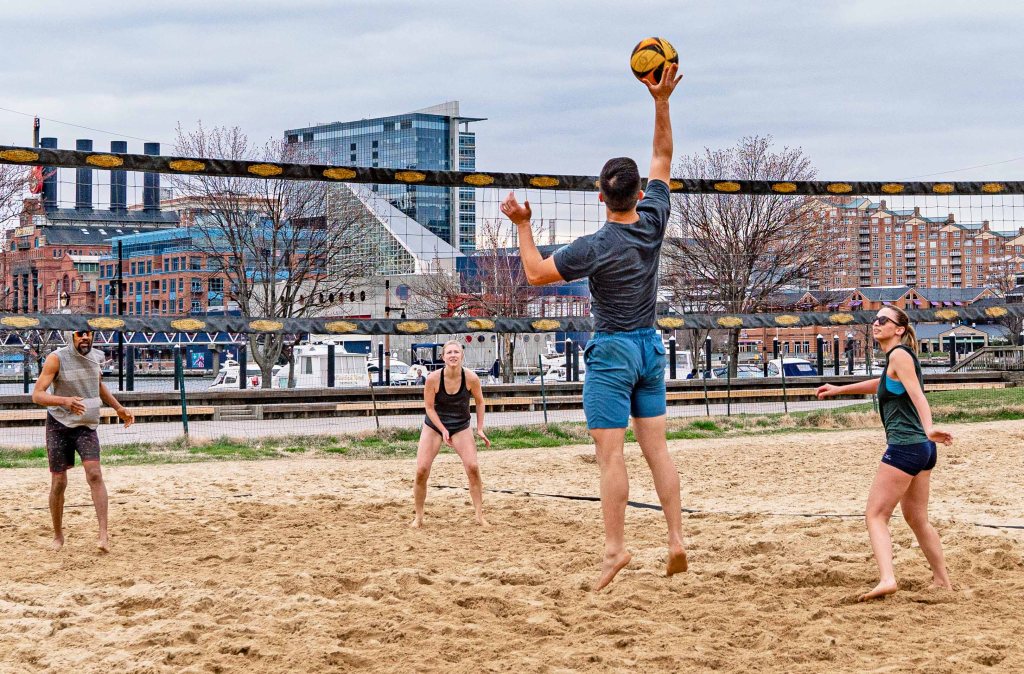 Baltimore Beach Volleyball at Rash Field on the Inner Harbor offers free drop-in games on the weekends (weather permitting) at its seven sand courts. Registration for the 2023 spring league season is open now through April 8; free drop-in play occurs weekends through the end of April.