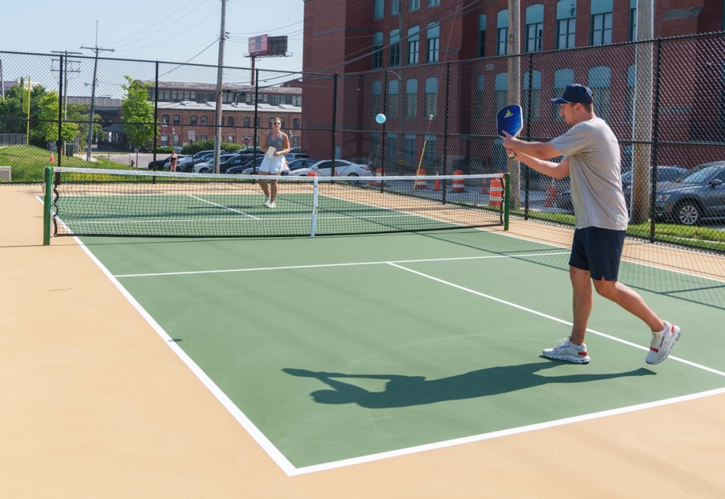 Even before the ribbon-cutting ceremony to celebrate the renovation of Riverside Park on Tuesday, June 18, children were dashing about on the multi-purpose field and chasing each other through the sprinkler water. And Allison Funk and Andrew Drain were playing pickleball on the new court, and James Jenkins was tossing a baseball to his father, Mike Jenkins.