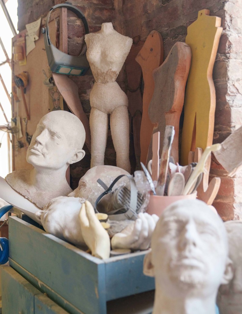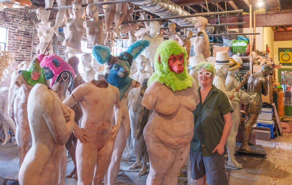 Rows of spare mannequins and bins of spare body parts occupy the middle studio space. They can be reassembled and sculpted over to look more natural and realistic. Some are visible from the windows along Birckhead Street, a sight that her SoBo neighbors have enjoyed over the years.