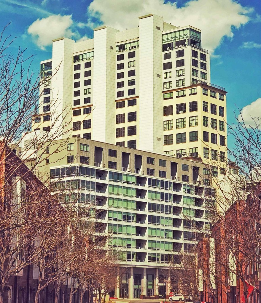 Rising high above the piers and rail lines along the north shore of Locust Point, the Silo Point condominium complex stands as a 24-story-tall witness to the peninsula’s past once dominated by railroads and shipping. The structure repurposes a massive concrete grain elevator opened by the Baltimore & Ohio Railroad 100 years ago this fall, which was erected to replace wooden grain elevators from the 1870s that were destroyed by fire.