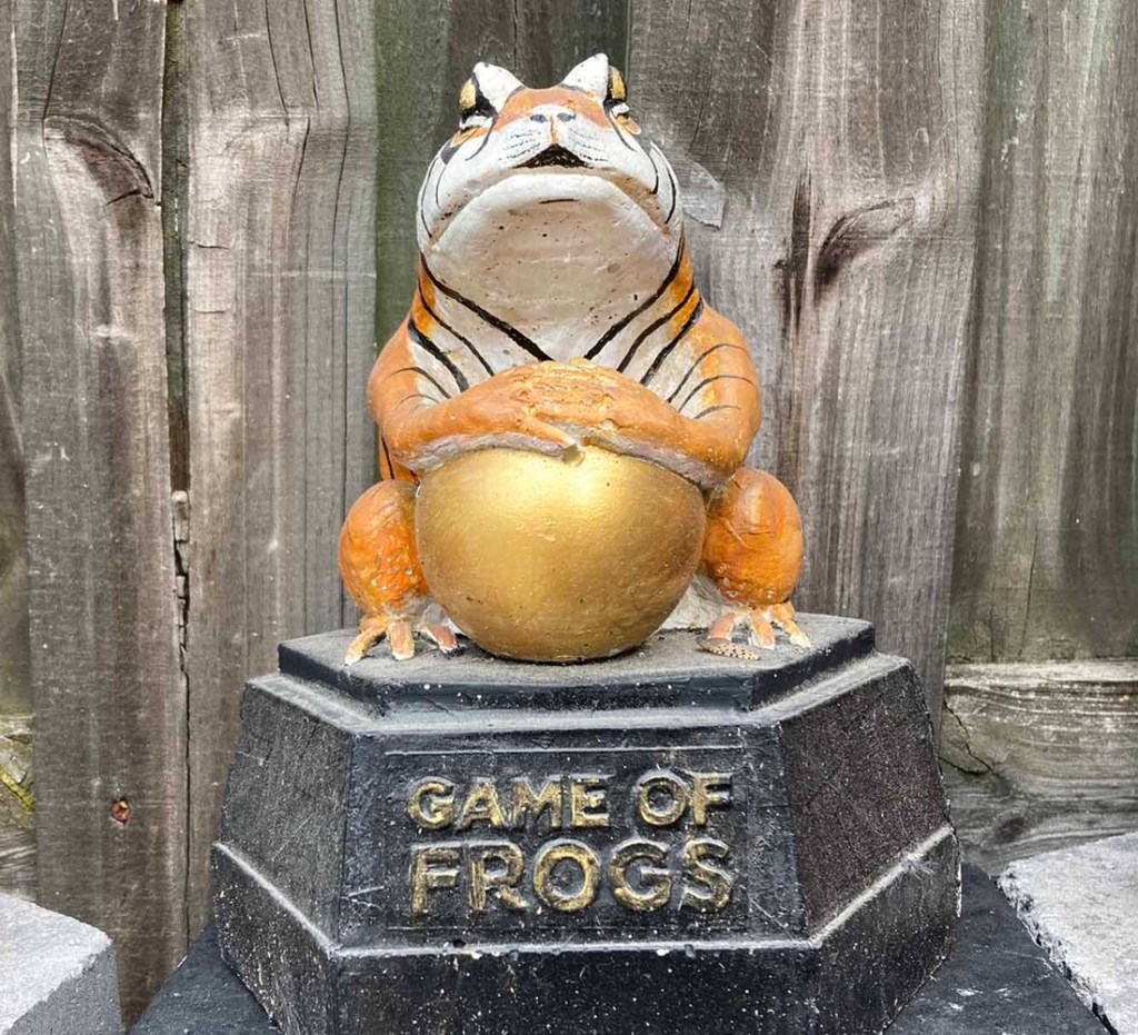 The frogs sparked a joyful response, Jeremiah recalled, with many finders pleasantly perplexed about the nature of the game, which, he notes, has no connection to the Game of Thrones. “It literally is just a game with frogs. There are no rules. Just find them and enjoy.”